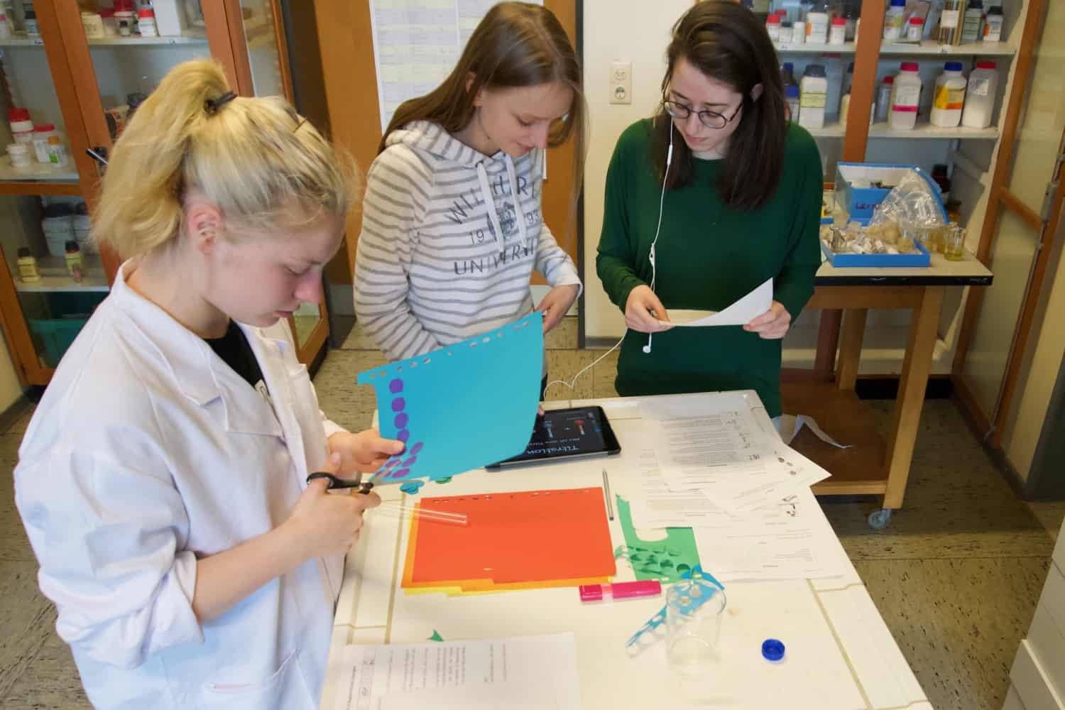 Die Erstellung des Erklärvideos ist eine sehr spannende Phase, in der die Gruppen an ihren Produkten arbeiten und in der unterschiedlichste Herangehensweisen zu beobachten sind. In dieser Phase wurden Modelle gebastelt, experimentiert und das Video nachbearbeitet und vertont. Die Lehrkraft berät die Schülerinnen und Schüler in dieser Phase bei individuellen Fragen und hat selber die Möglichkeit die Lernenden in ihren Arbeitsprozessen zu beobachten. Dieses ermöglicht neue und interessante Erkenntnisse über die eigene Lerngruppe. Es ist z.B. zu beobachten, wie sonst eher ruhige Schülerinnen und Schüler aktiv mitgestalten und mit Eifer bei der Sache sind.